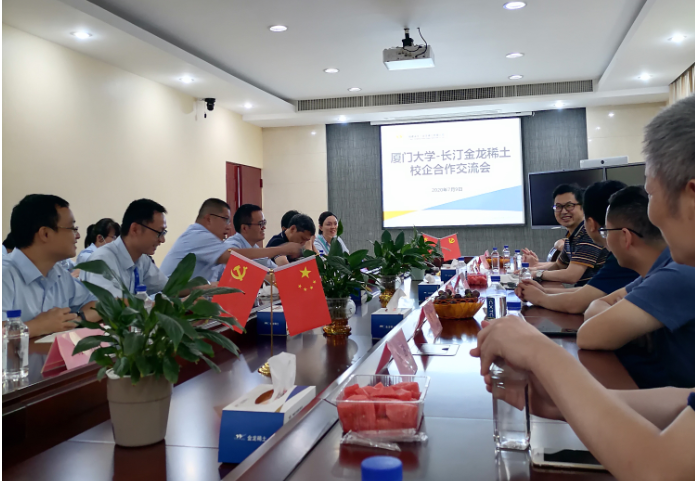 在走访福建省长汀金龙稀土有限公司时,重点实验室老师们与公司领导班子成员和技术骨干举行了座谈,通过了解公司的发展状况,共同探讨了厦门大学与金龙稀土公司全方位战略合作的可行性和开展合作的思路举措。与会人员还就双方如何推进校企战略合作展开了热烈讨论,希望在溶渣资源再生技术、分散液技术开发等方面开展有效合作,优势互补,齐心协力,共同解决协同发展过程中遇到的具体问题和困难。